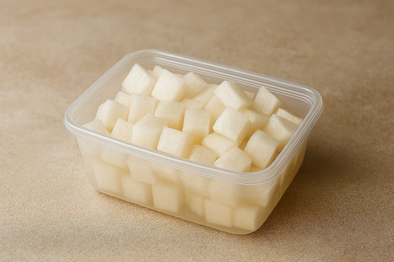 In Korea, ordering fried chicken for delivery almost always includes a container of chicken-mu. It comes in a square plastic box, filled with neatly diced white radish cubes and a clear pickling liquid. Some people enjoy sipping the leftover brine, while others skip the radish entirely. Regardless of preference, its presence is expected and often considered part of the full fried chicken experience.